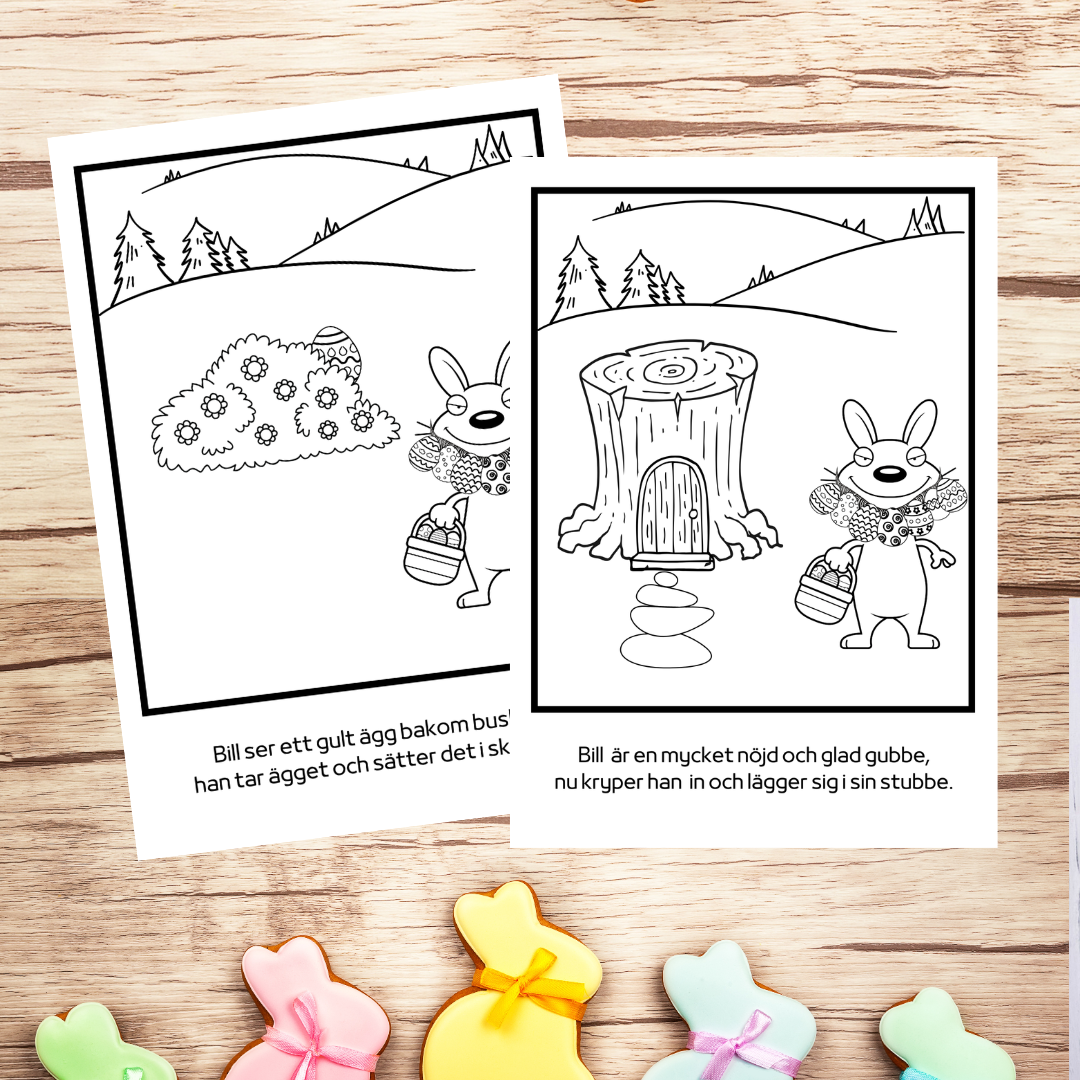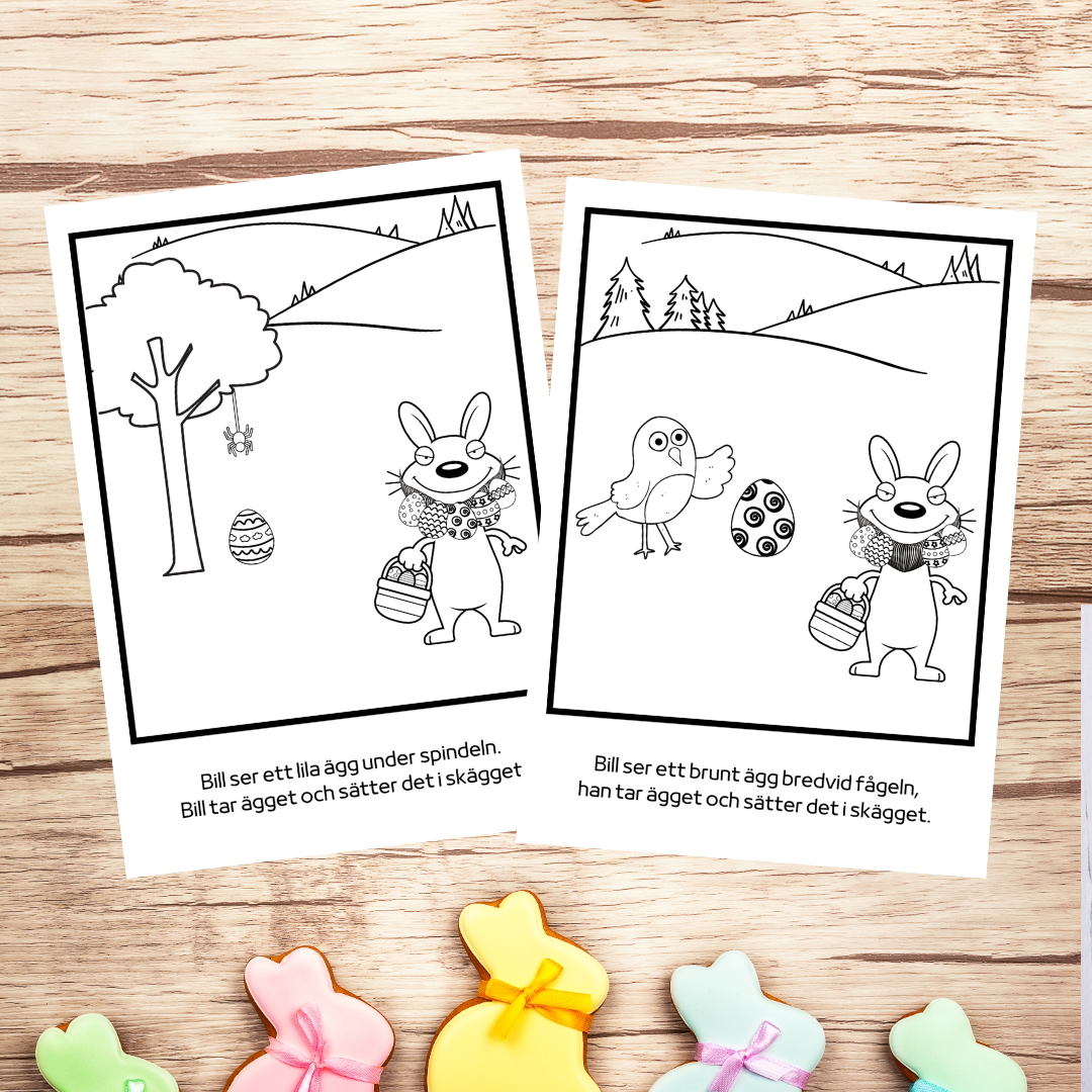 Påskharen Bill är inte en vanlig hare, utan en riktig pyssel och språkexpert. I sagan om påskharen Bill får vi inte bara lära oss om antal, prepositioner och läsförståelse utan även om rim och pyssliga aktiviteter.
