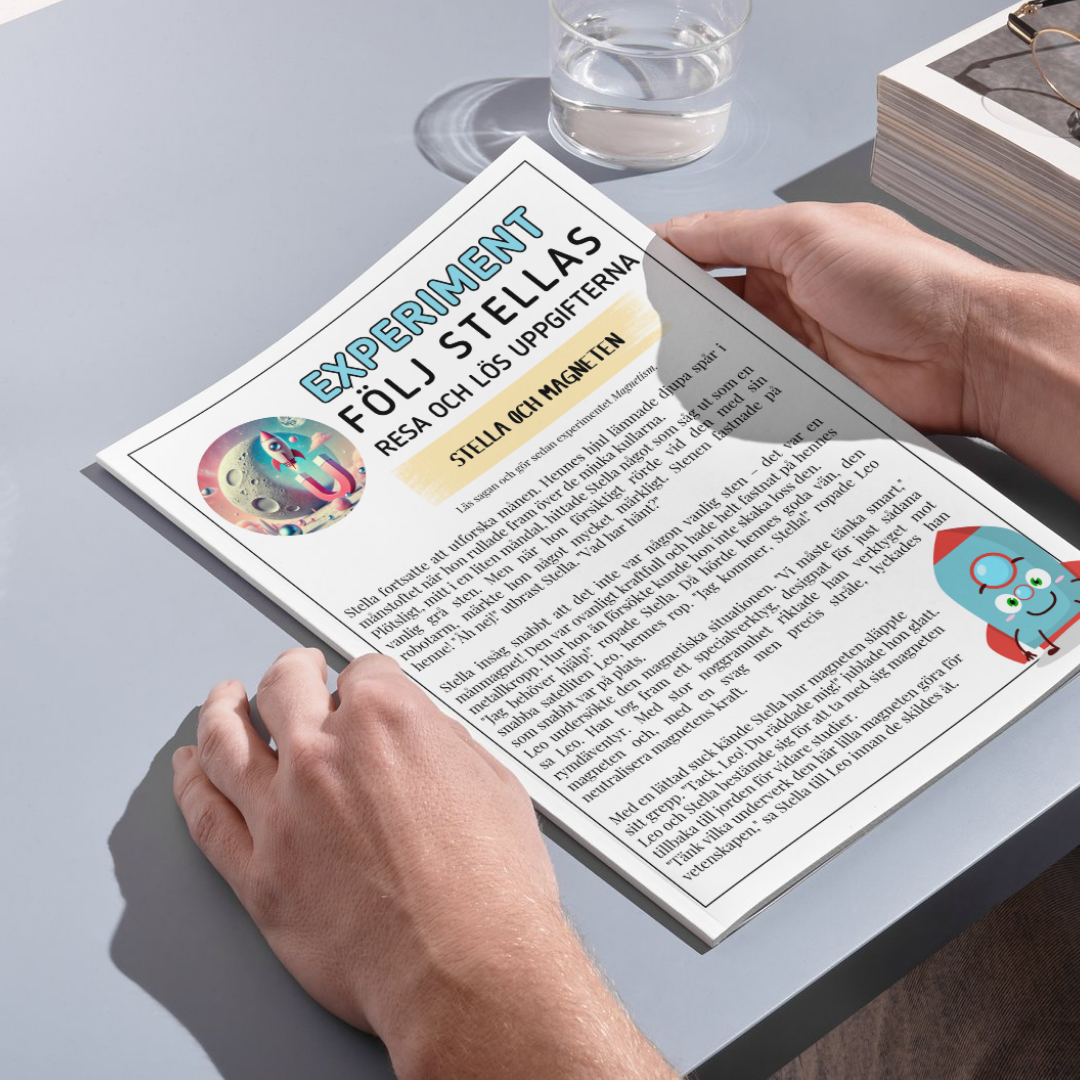 Här finns sagan om raketen Stella. Till varje äventyr som Stella upplever i rymden finns ett beskrivande experiment. Experimenten handlar om ämnen som tryck, magnetism, vad som flyter och vad som sjunker, densitet med mera. Sagan och experimenten omfattar tillsammans cirka 30 sidor.