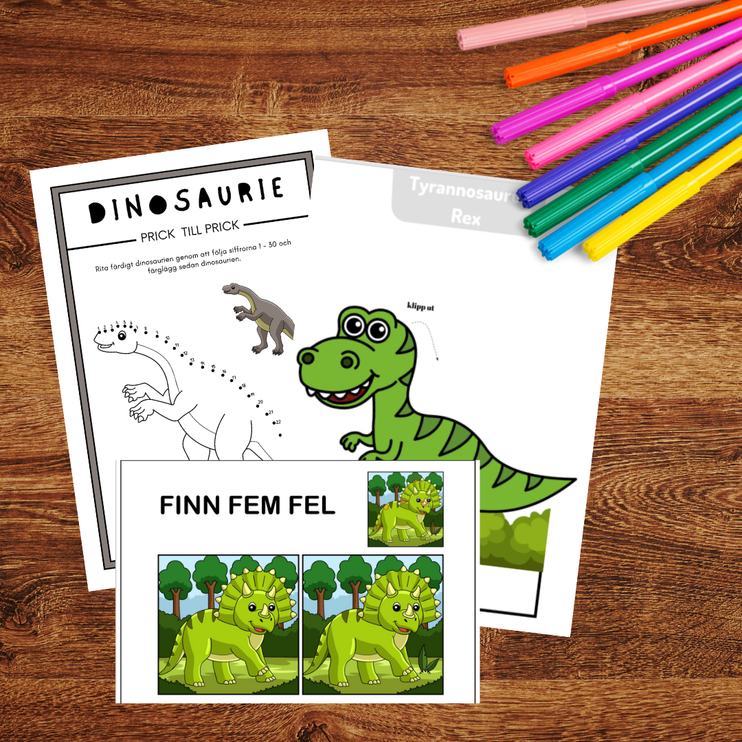 Materialet kan också passa till ett barnkalas med dinosaurietema! Så ladda ner materialet och ge dig själv möjligheten att vara kreativ och utforska den spännande världen av dinosaurierna. Jag är säker på att du kommer att skapa något helt fantastiskt!