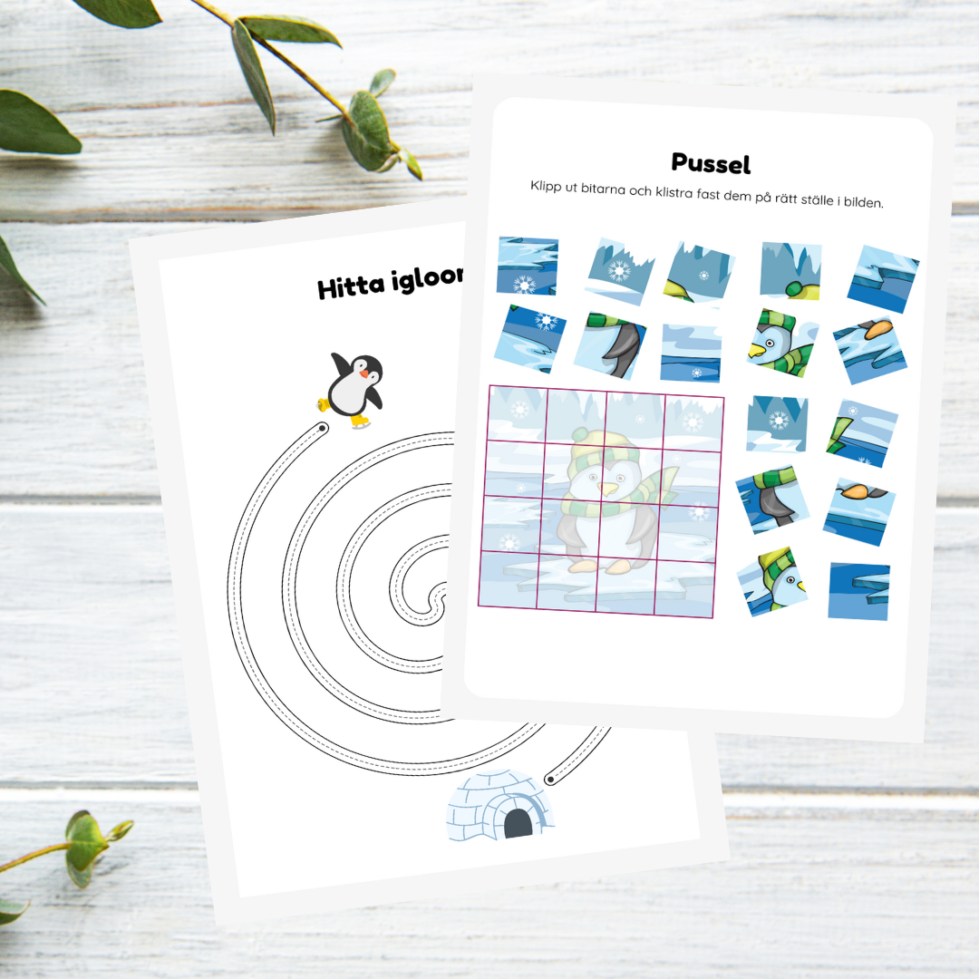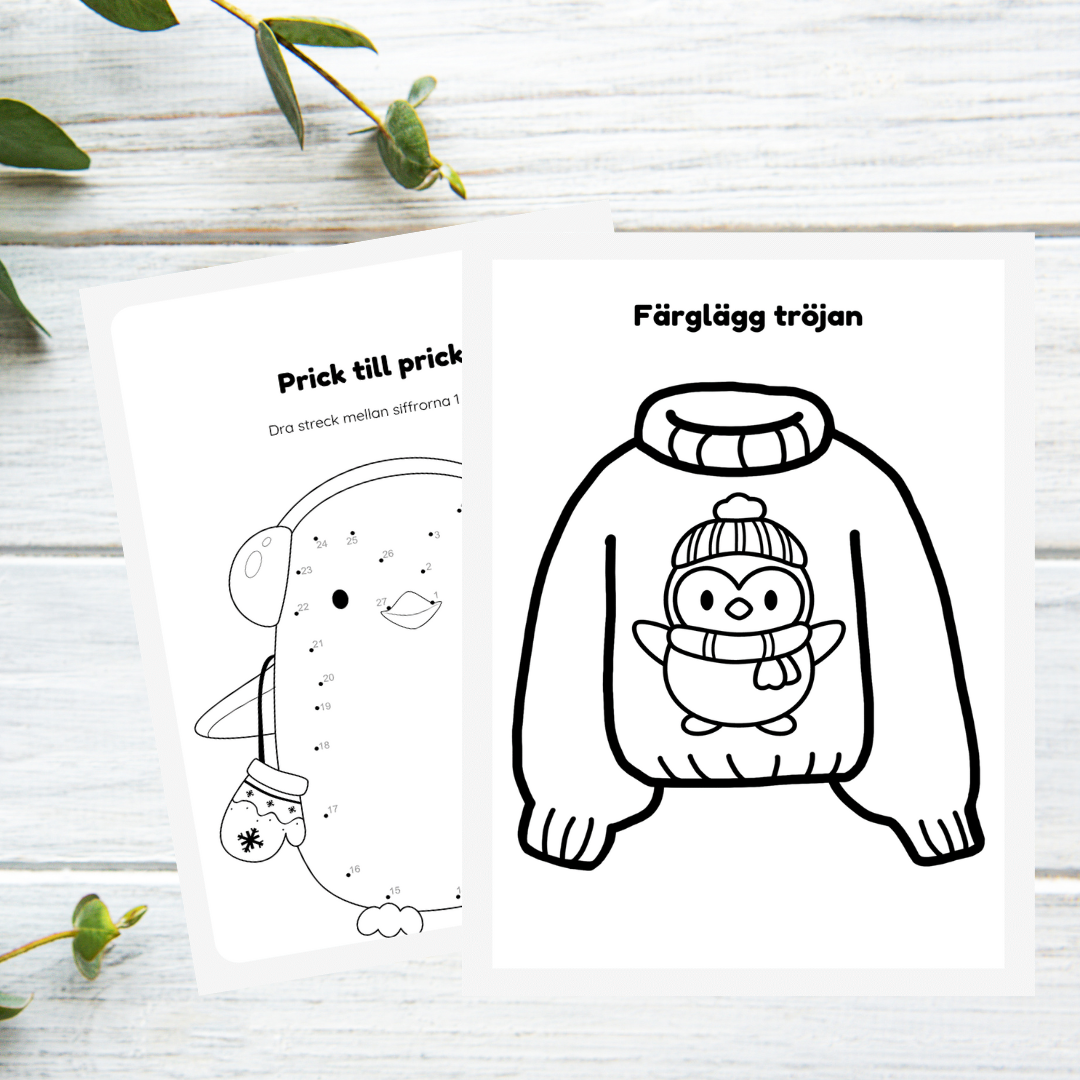 Det följer också med ett pysselhäfte på 10 sidor med uppgifter som att måla efter kod, hitta i labyrinter och målarbilder.