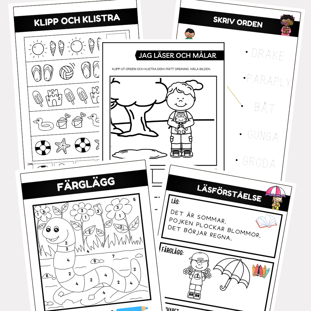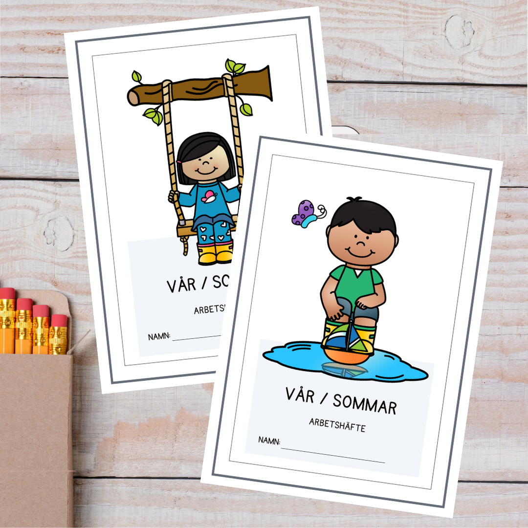 Här finns ett arbetshäfte på 22 sidor om våren och sommaren. Häftet erbjuder uppgifter som: