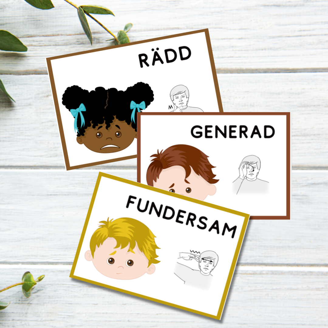Här finns ett material om känslor. Att kunna prata om och förstå våra känslor är viktigt för vårt välbefinnande. Det finns tecken som stöd med i materialet.