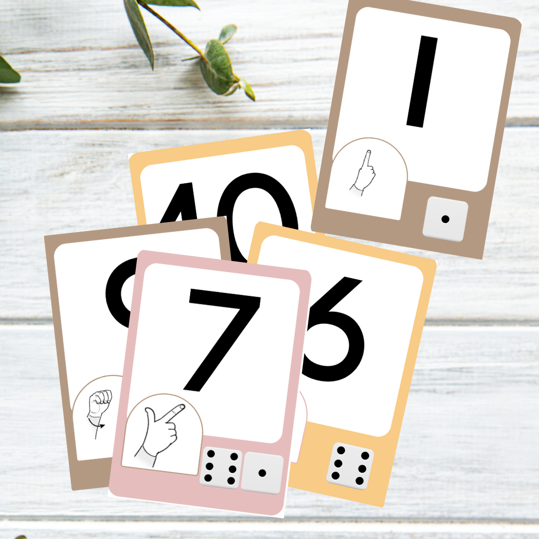 I materialet finns också siffrorna 1 - 10 med tecken som stöd och det materialet har samma färgnyanser som alfabetet a - ö med tecken som stöd.