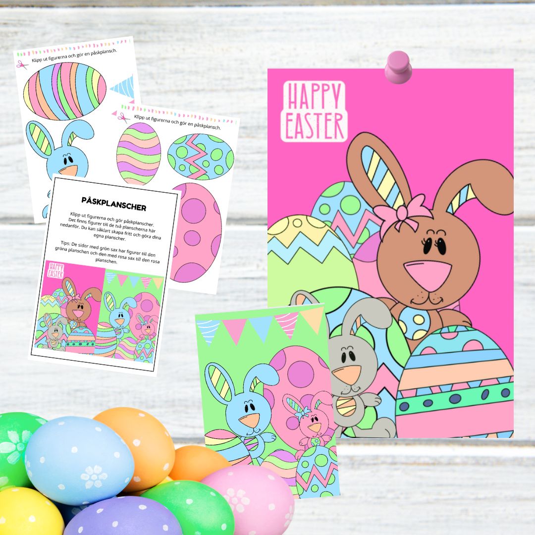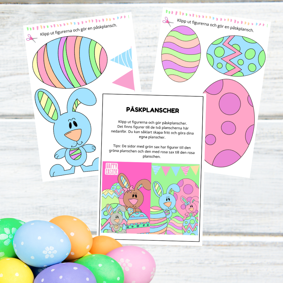 Dekorera planscherna och låt fantasin flöda för att skapa påskstämning. Skapa och gör lika planscher som följer med materialet eller skapa helt fritt. Lycka till.